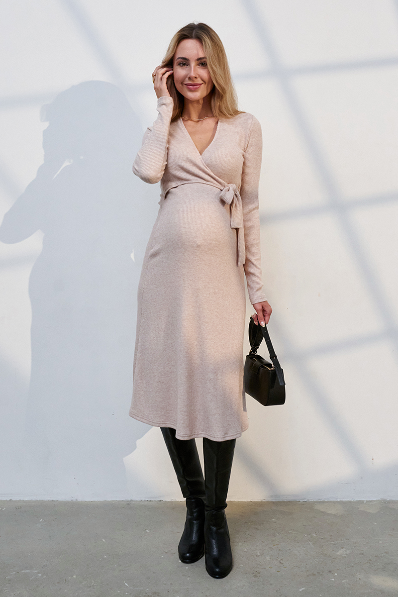 Елегантна сукня для вагітних і тих, хто годує з теплого трикотажу в рубчик.
