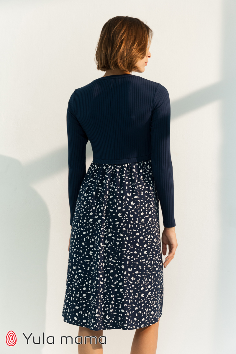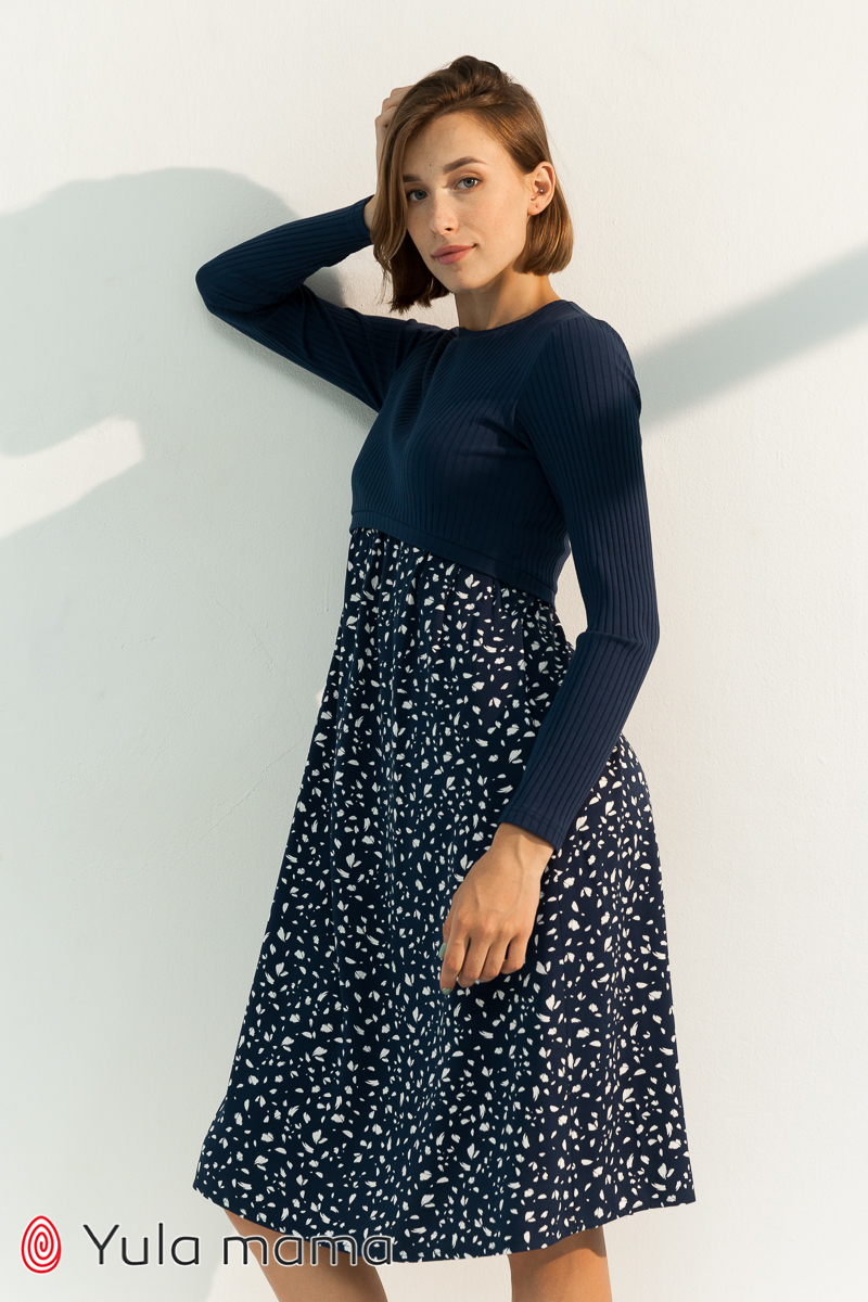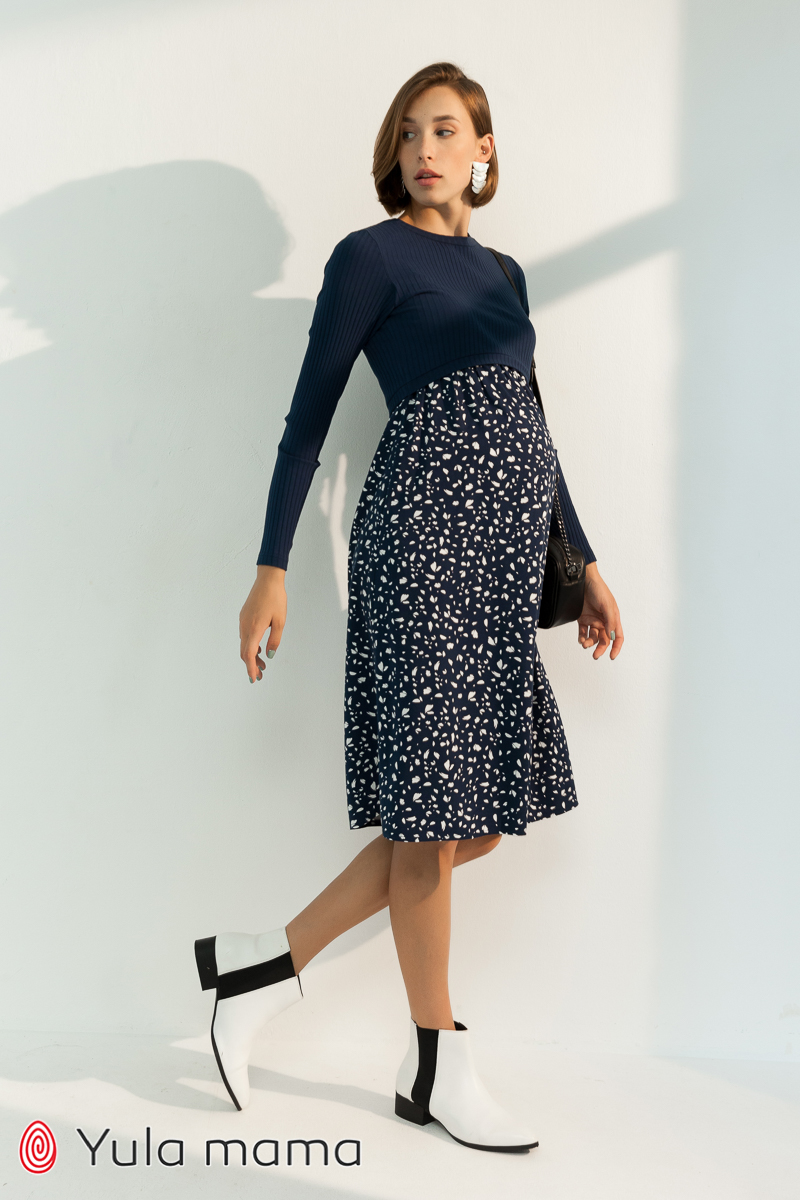 Платье для беременных и кормящих c трикотажным лифом и юбкой из плотного штапеля.