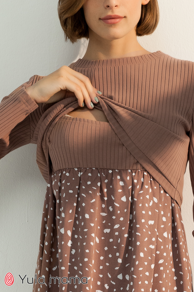 Платье для беременных и кормящих c трикотажным лифом и юбкой из плотного штапеля.