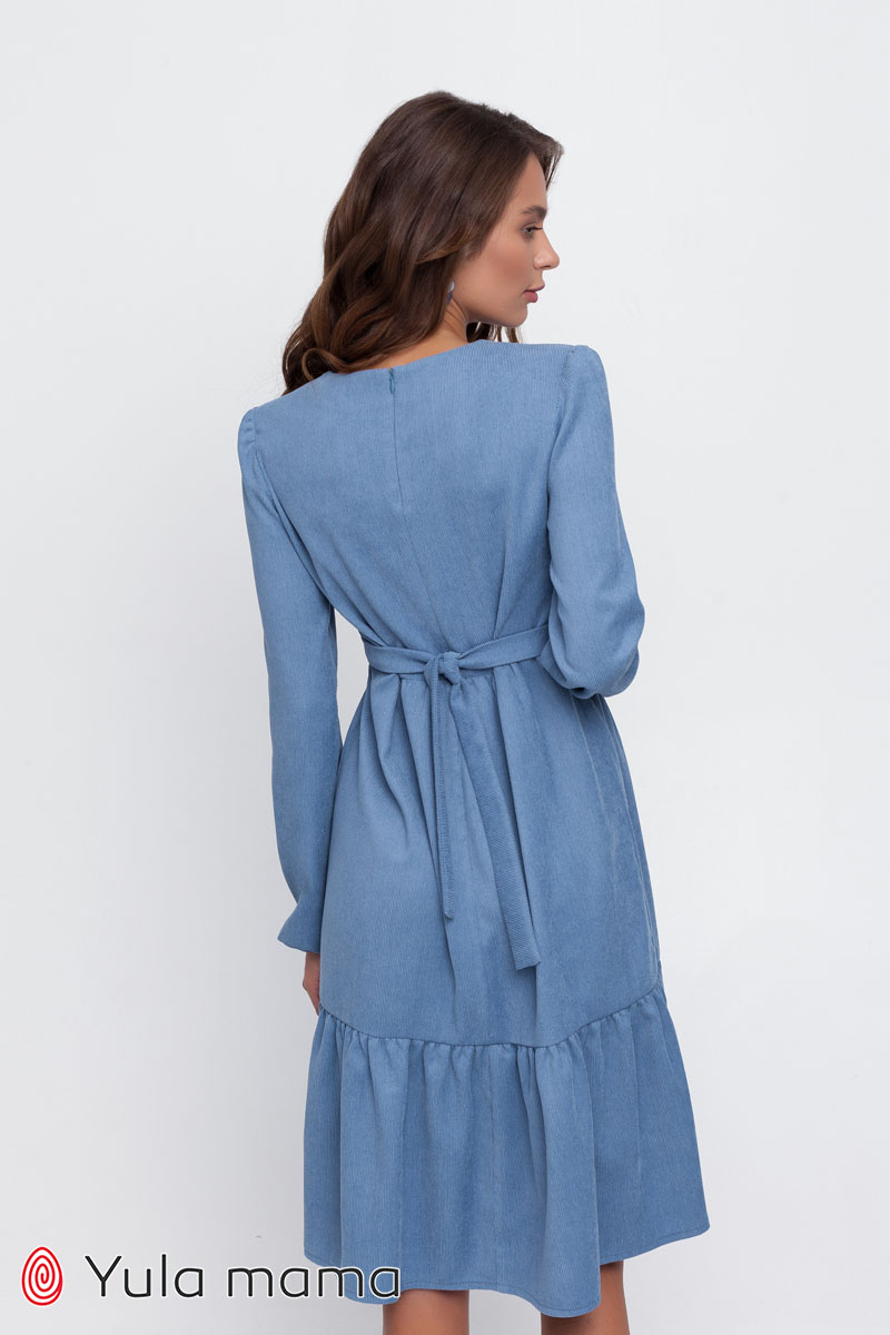 Стильное платье для беременных и кормящих из вельвета длиной миди.