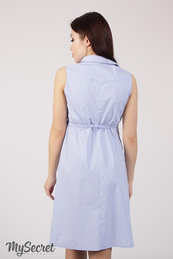 Вот уже несколько лет возглавляющее модный олимп платье-рубашка для беременных и кормящих из тонкого поплина в полоску. Лиф облегающий с рубашечным воротничком и планкой, эффектно украшенной металлической фурнитурой. В нагрудных рельефах спрятаны потойные молнии - наш маленький секрет для кормления. Свободный низ дает достаточно объема для изменяющихся форм и дарит прохладу в летнюю жару. Есть удобные карманы. Цвет: белая полоска на светло-голубом фоне.