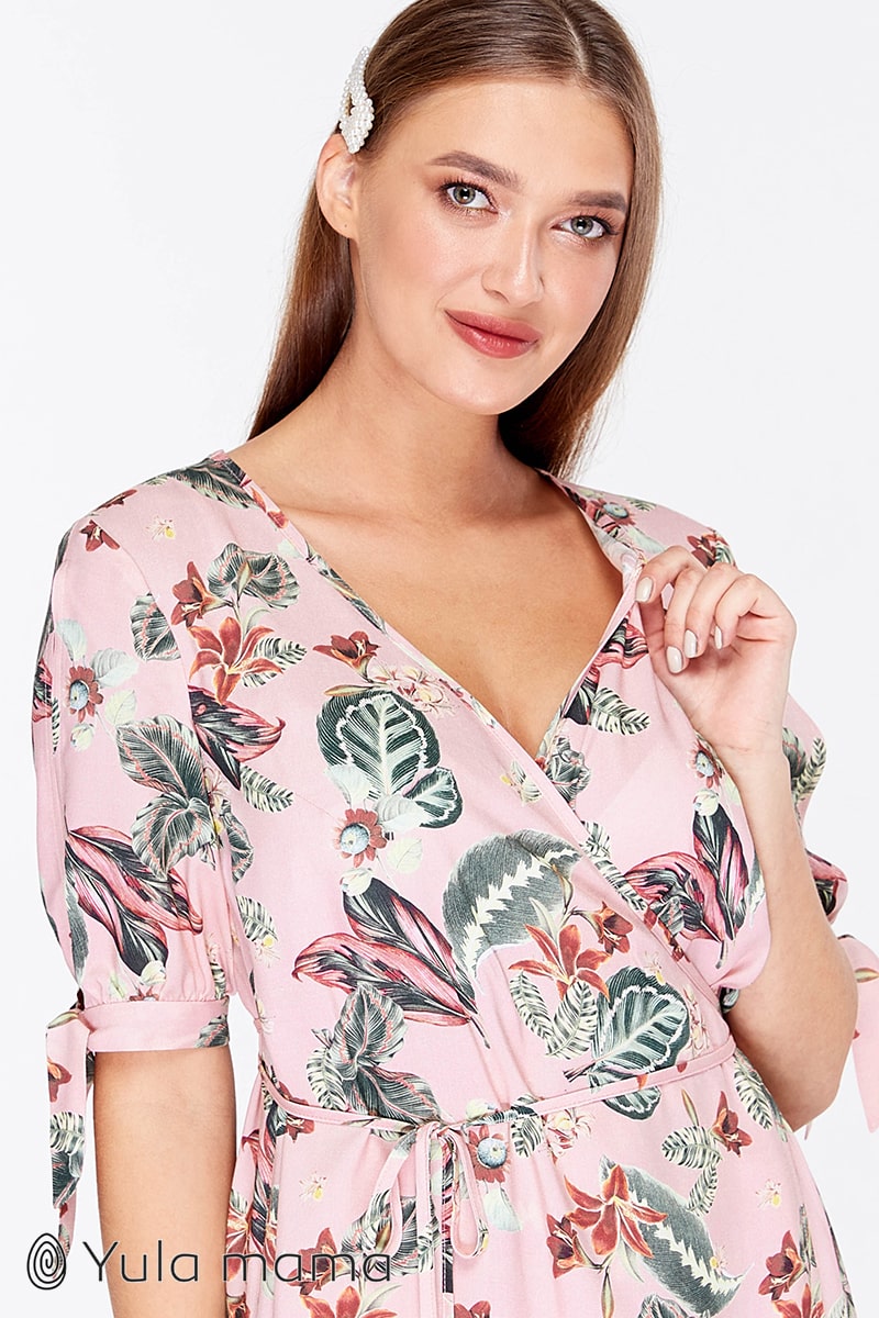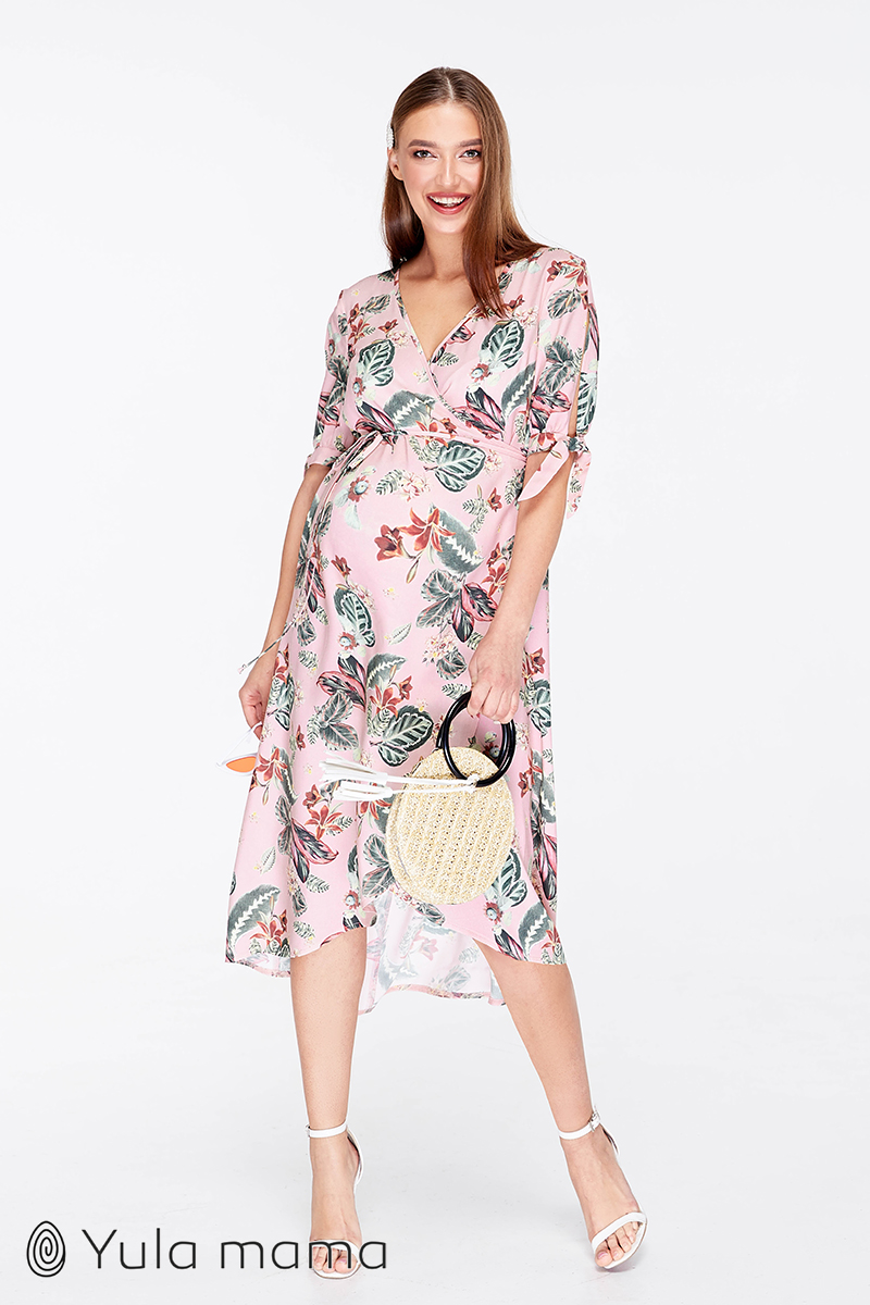 Женственное платье для беременных и кормящих из штапеля с принтом.