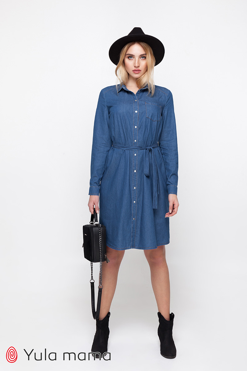 Плаття-сорочка для вагітних та годуючих з тонкого джинсу.