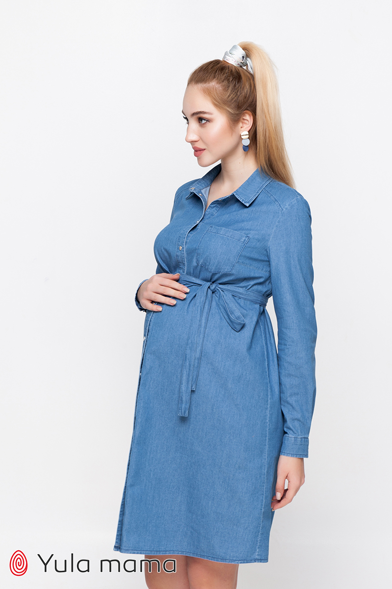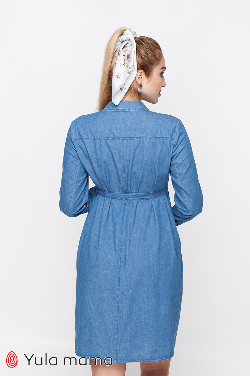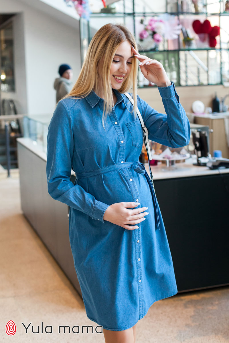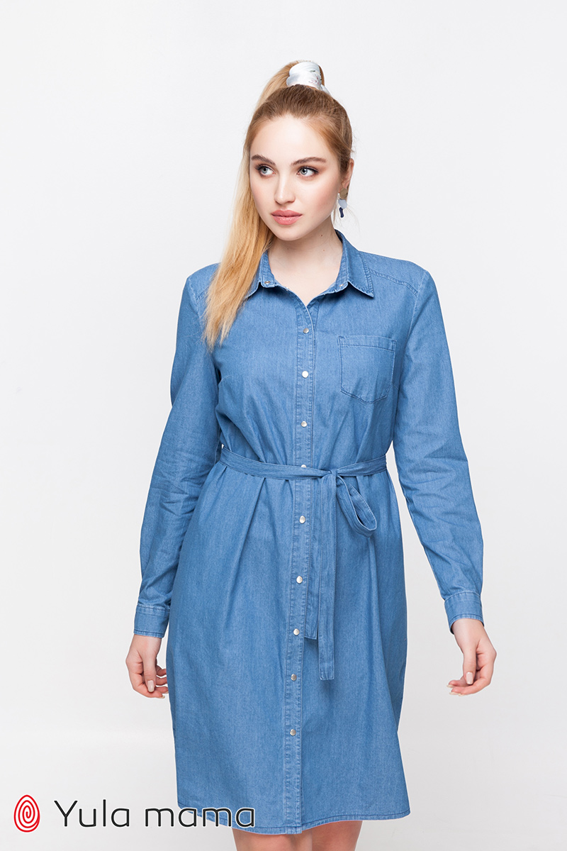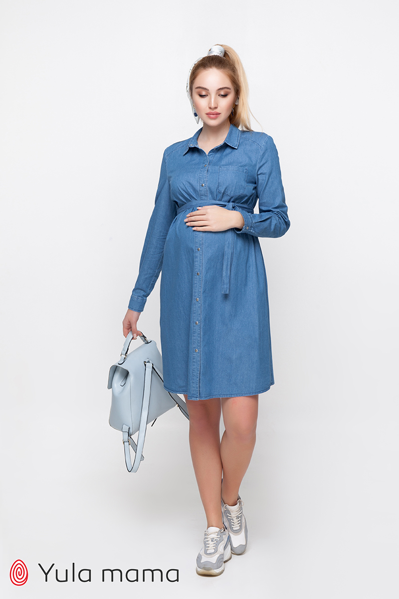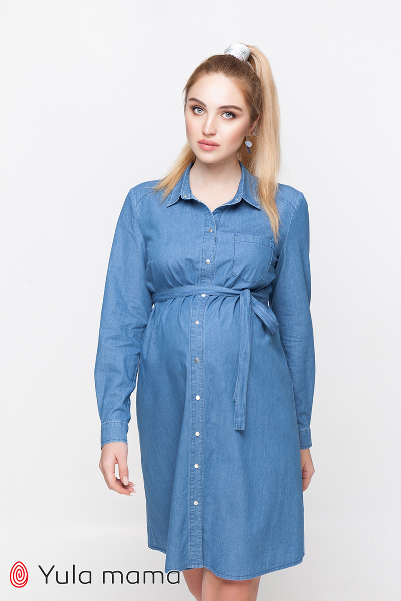 Сукня-сорочка для вагітних та годуючих з тонкого джинсу.