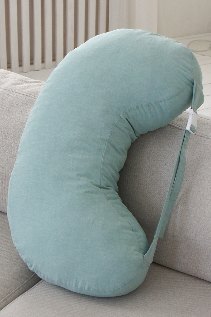Пройшовши на особистому досвіді материнства незручність більшості стандартних подушок, наша фундаторка внесла доробки, які допомагають розвантажити спину і дозволяють звільнити руки молодій мамі: