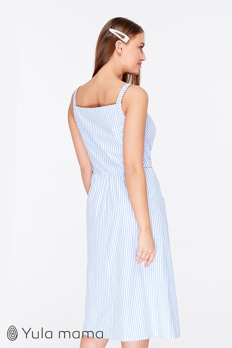 Сарафан только для кормящих мам из стрейчевого поплина в полоску, длиной миди.