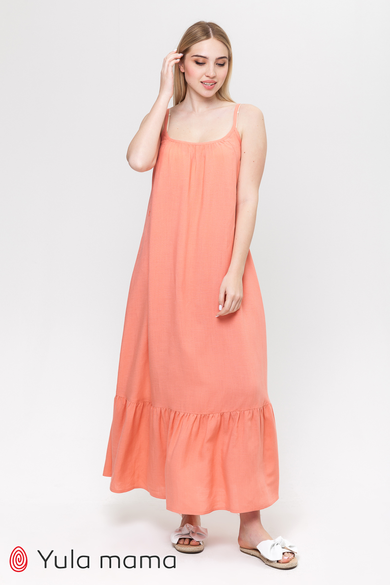 Довгий сарафан для вагітних і тих, хто годує в бохо-стилі з регульованими бретелями.