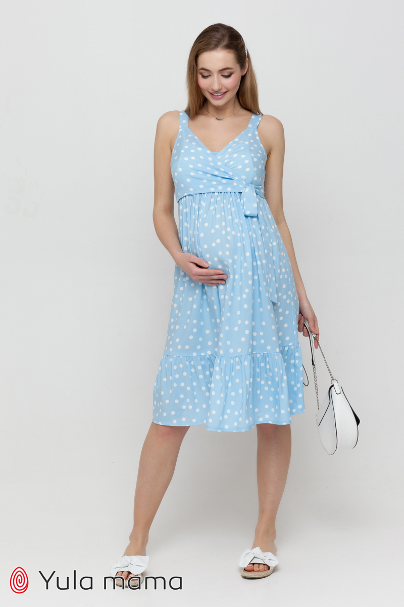 Джинсовий сарафан міді для вагітних та годуючих з регульованими бретелями.