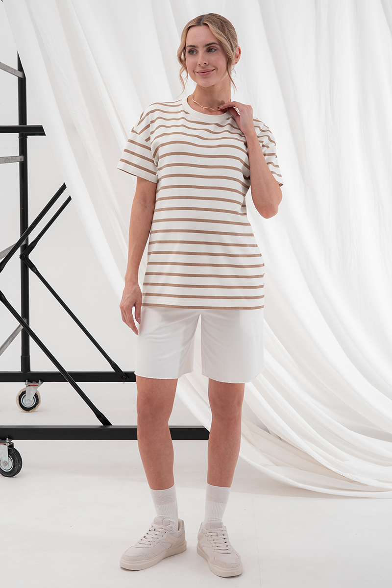 Вільні шорти для вагітних у повсякденному стилі з відкритими зрізами внизу.