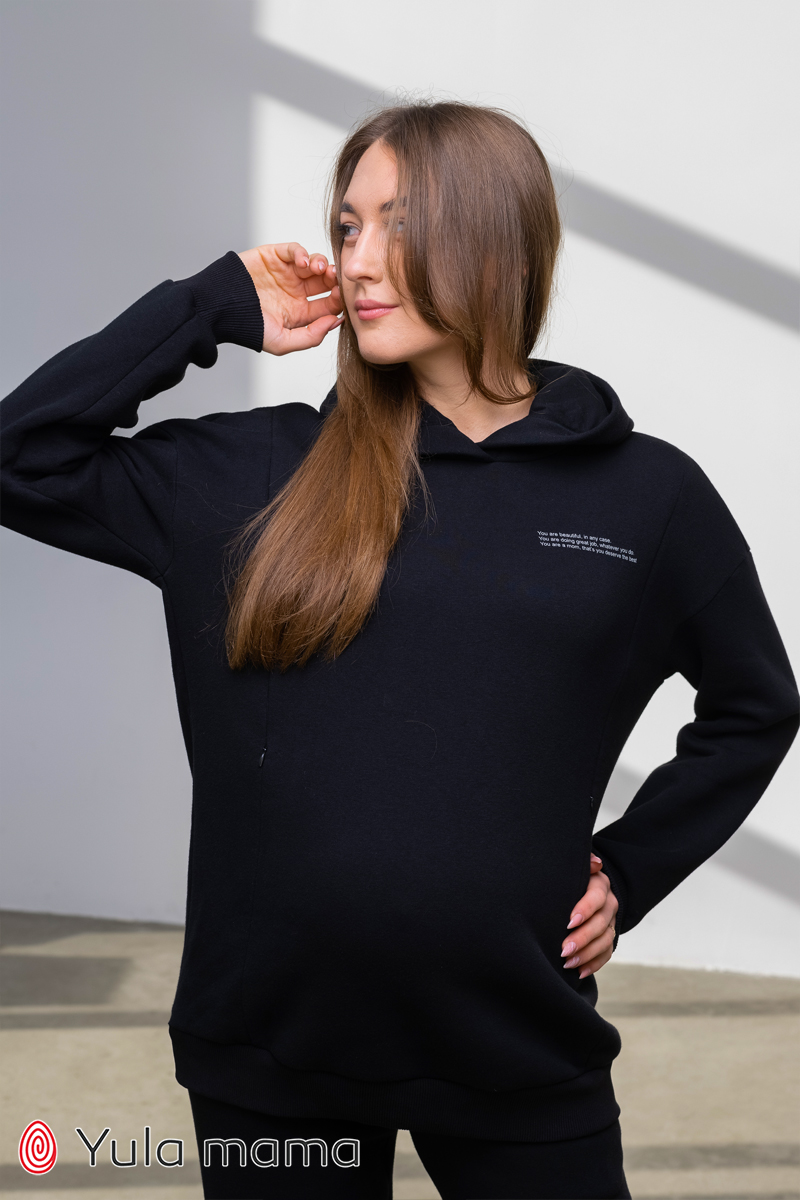 Стильна тепла худі для вагітних і годуючих із щільного трикотажу з начосом.
