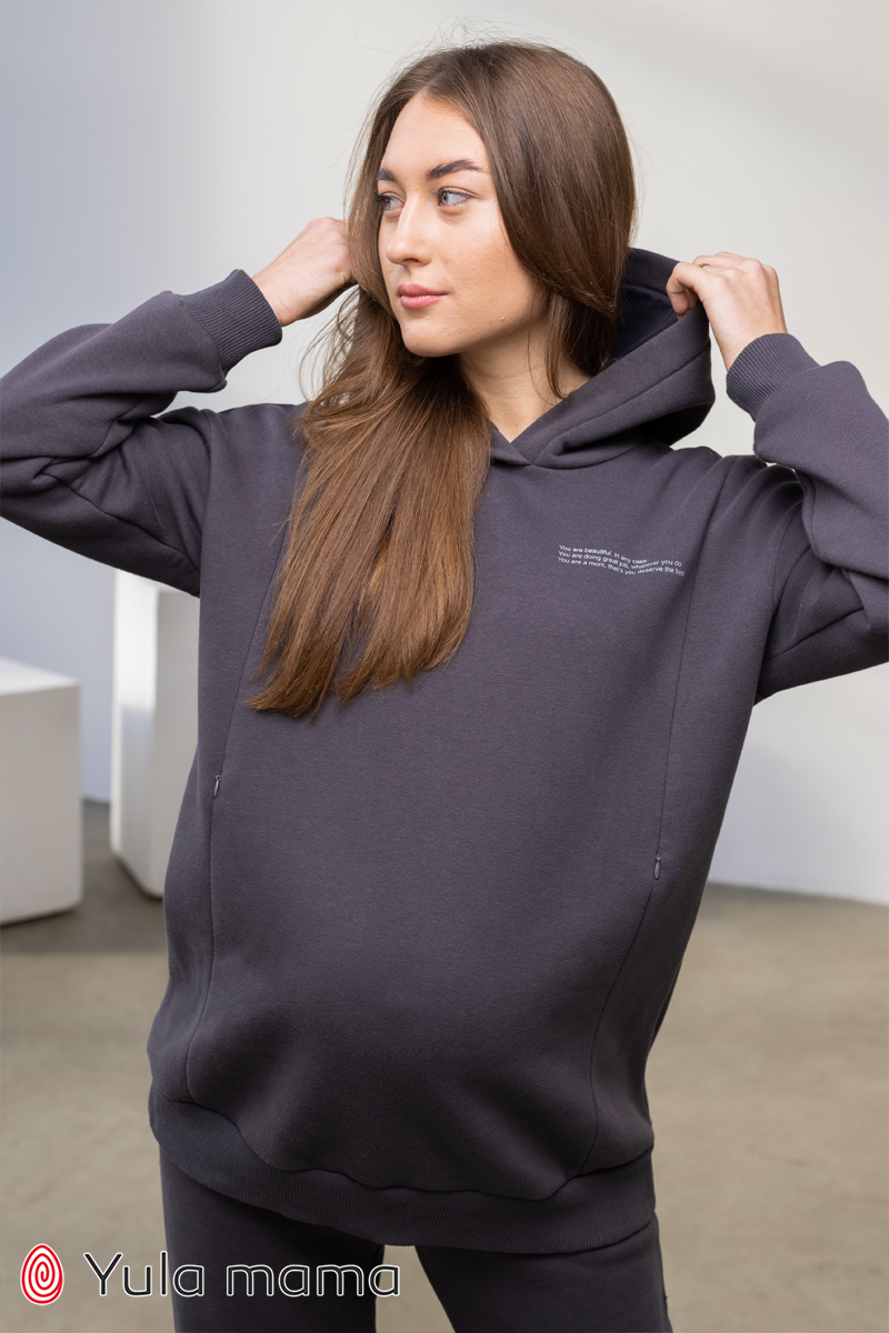 Стильне тепле худі для вагітних і годуючих із щільного трикотажу з начісом.