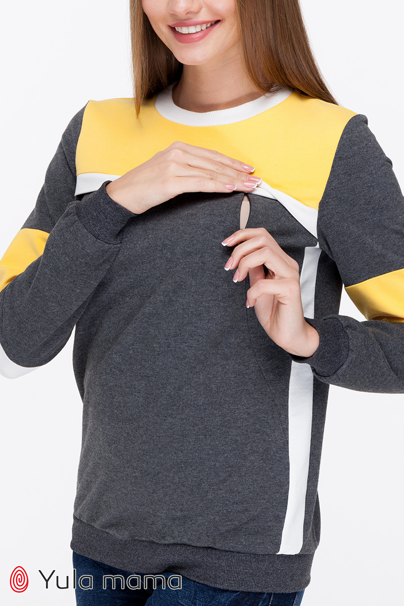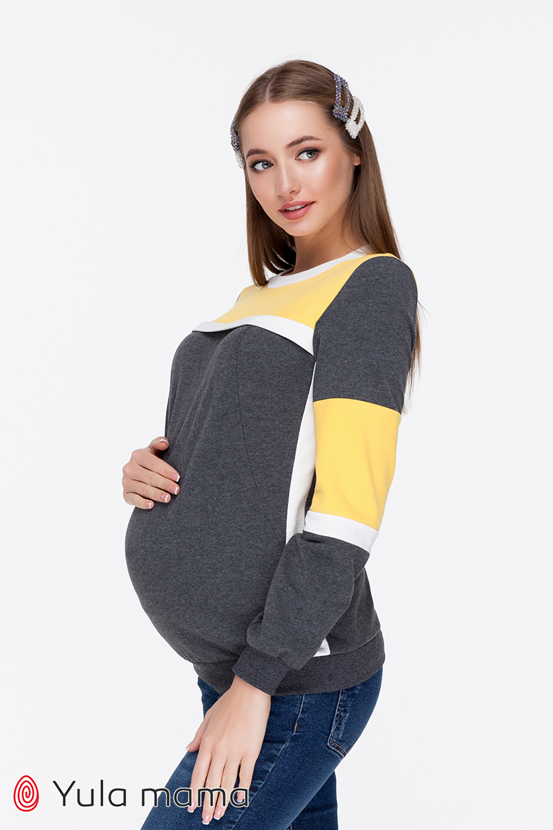 Модний трикотажний світшот для вагітних та годуючих у стилі color-block.