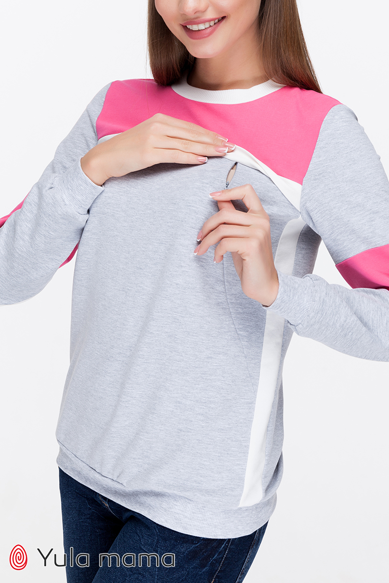 Модний трикотажний світшот для вагітних та годуючих у стилі color-block.