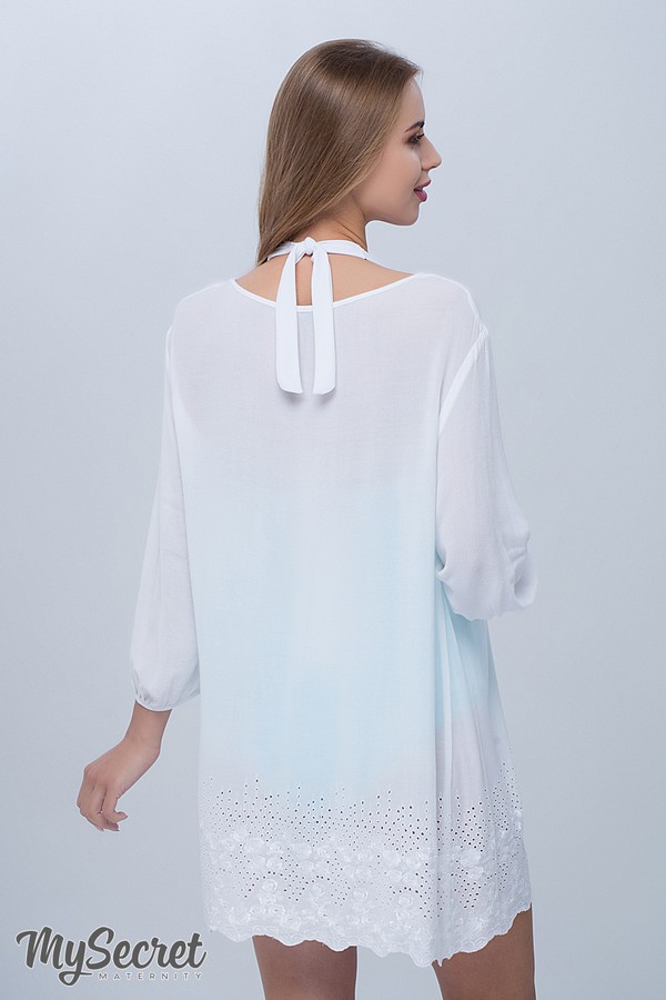 Рукав трохи призбираний на бейку, а центральний глибокий розріз на зав'язках спеціально розрахований так, щоб ви в майбутньому могли з комфортом годувати вашого малюка.