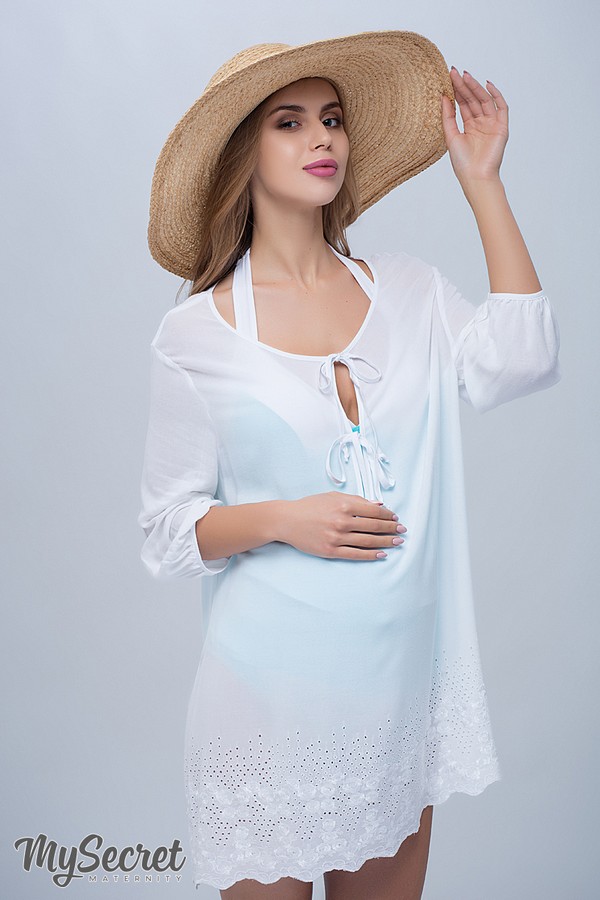 Легка пляжна туніка вільного фасону з ніжної тканини, що летить, прикрашеної вишуканою вишивкою.